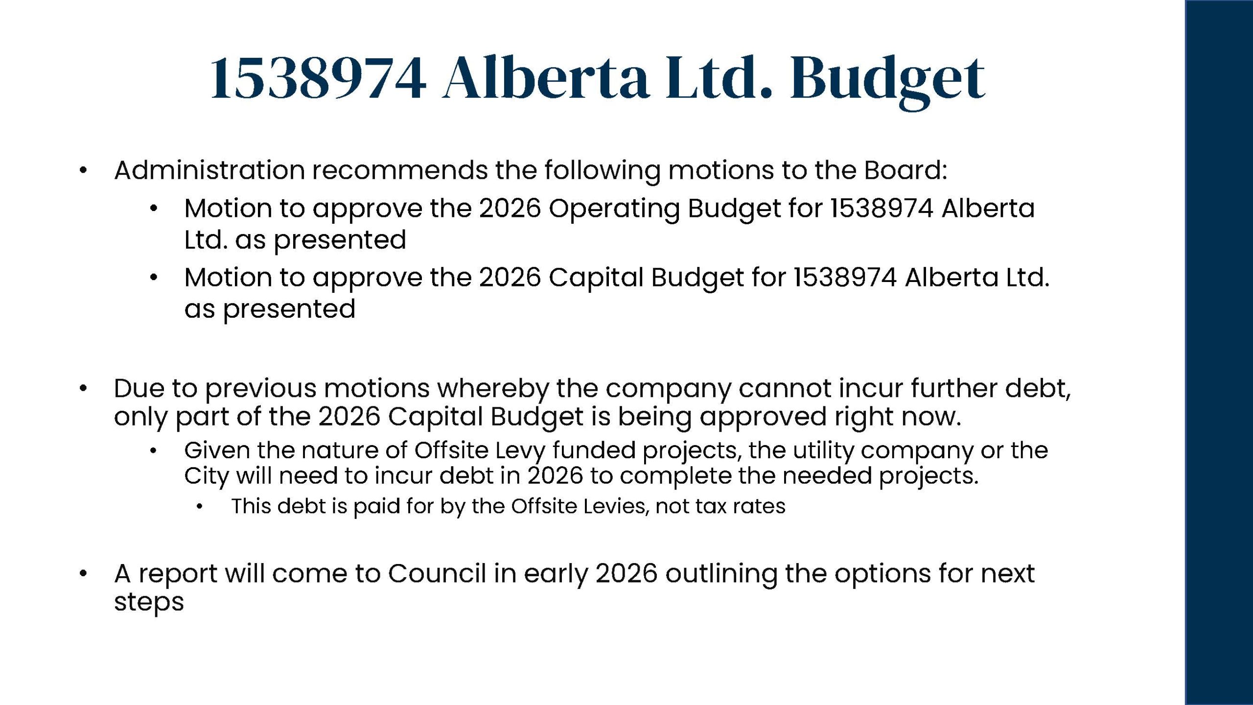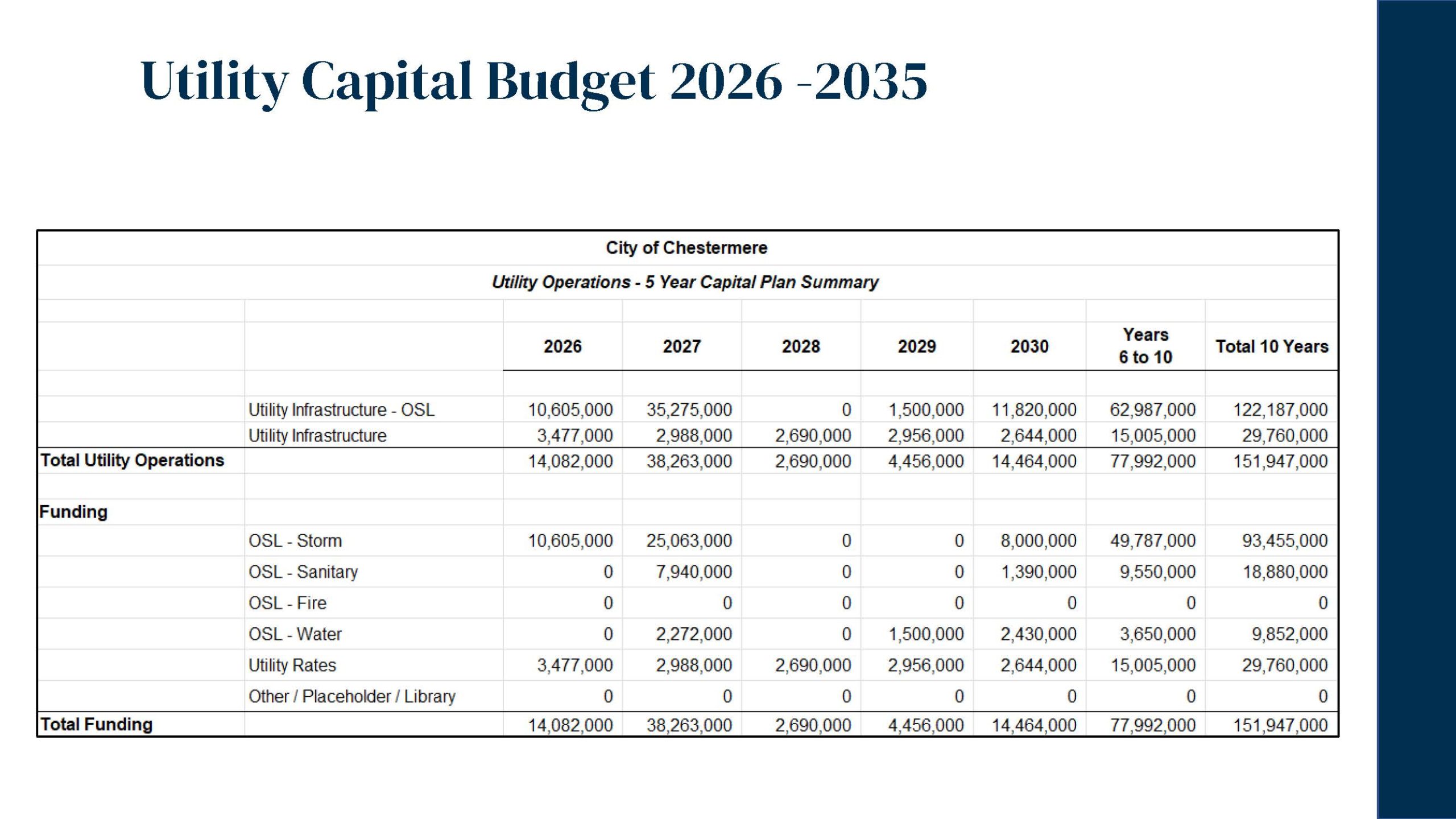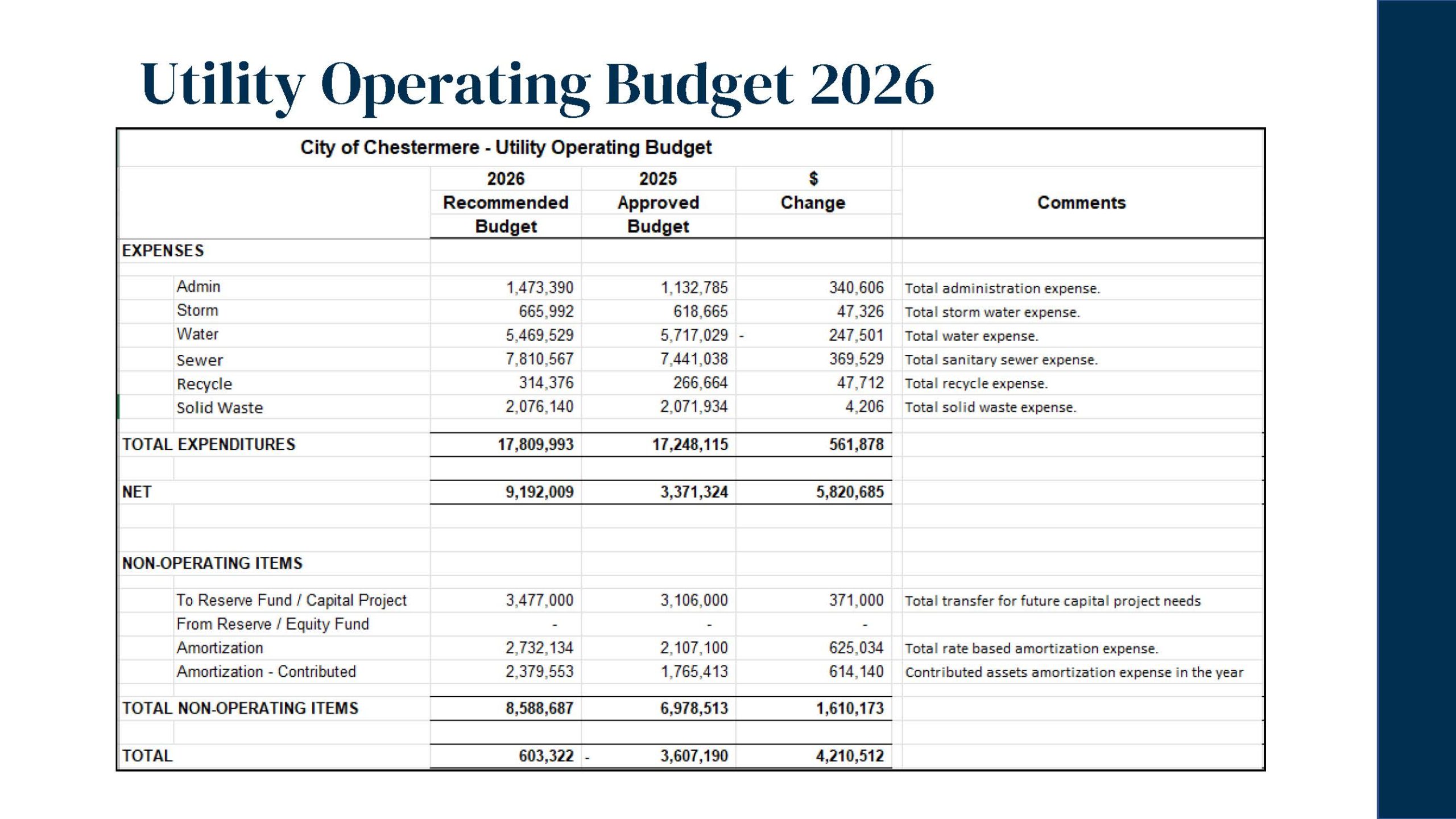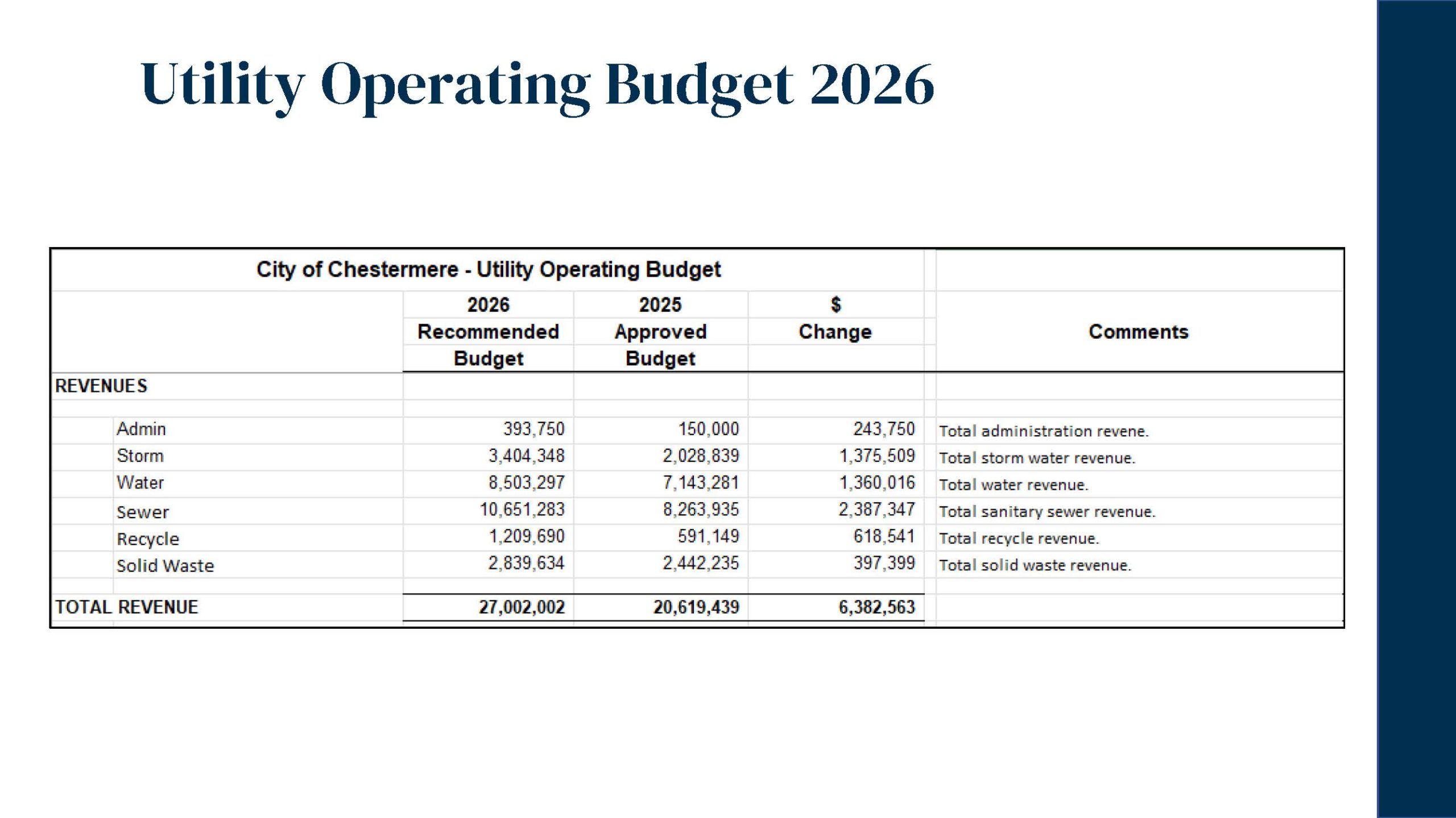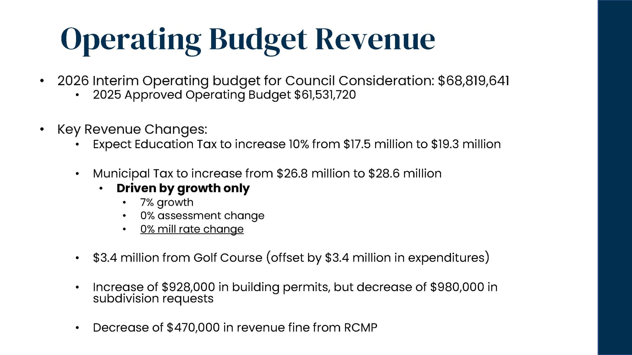 On December 16, 2025, Chestermere City Council approved the 2026 Interim Operating and Capital Budgets, focused on maintaining core municipal services, investing in community safety and recreation, and supporting the growing needs of the community.