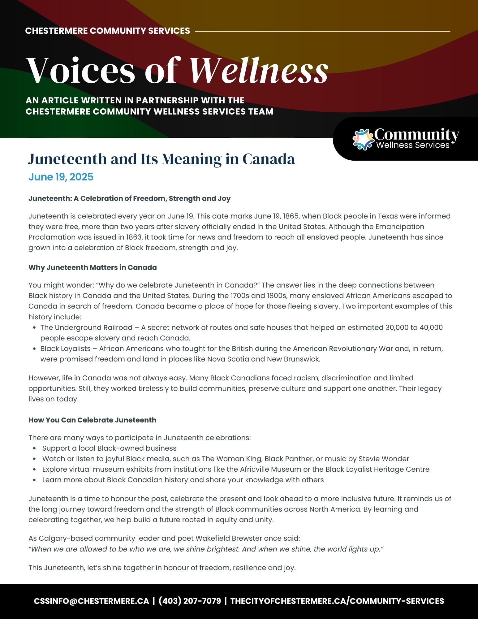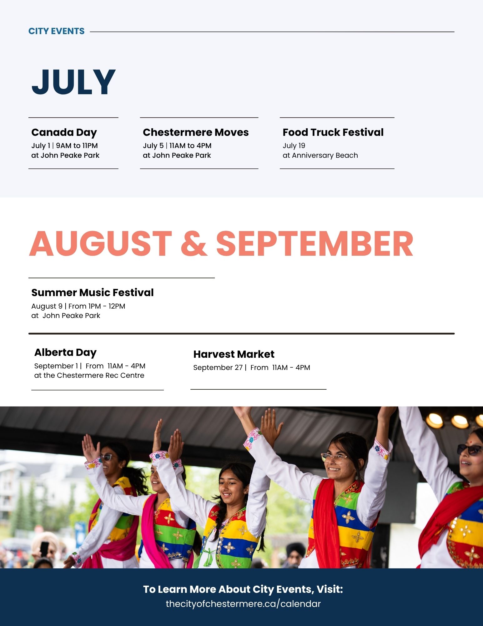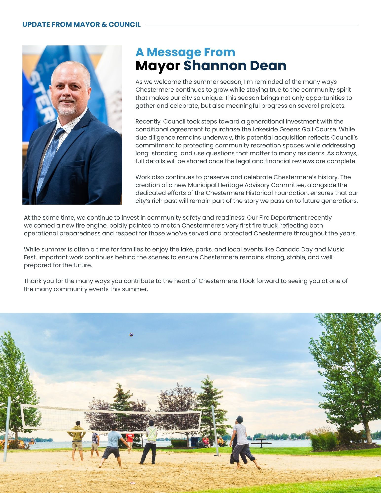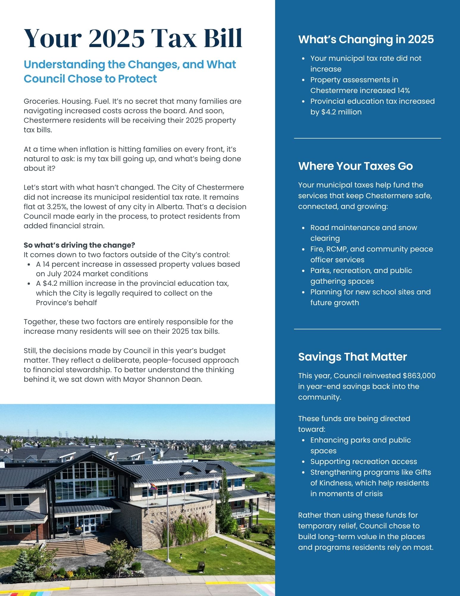 The Chestermere Wave is your seasonal community publication from the City of Chestermere, packed with local updates, exciting events, upcoming programs, and inspiring community stories. Designed to keep you informed and connected, the Wave is distributed throughout Chestermere and is also available for pick-up at the City Hall front desk. Stay in the loop with everything happening in your community.Â