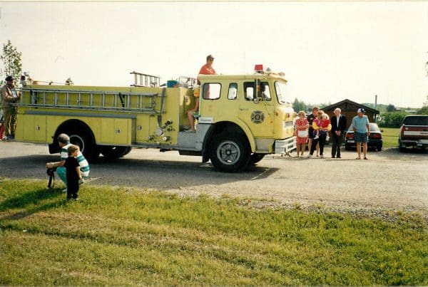 In 1996, an expansion was made to the fire hall to accommodate a small kitchen for volunteers, an office for the Fire Chief, a training area, and a floor drain in the hose tower. In the early 2000s, an ATCO trailer was added to provide additional space, followed by the construction of a large garage bay to house trucks that were previously parked outside. In late 2009, this bay was relocated to the public works yard to make room for a new fire hall.