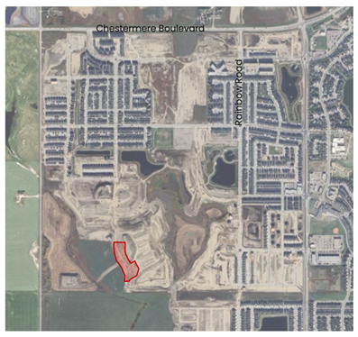 Bylaw 009-25 proposes an amendment to the City of Chestermere Land Use Bylaw 020-24, as amended to redesignate lands within the Chelsea community from Residential Semi-Detached (R-2) to Residential Multi-Unit (R-3) as illustrated below.