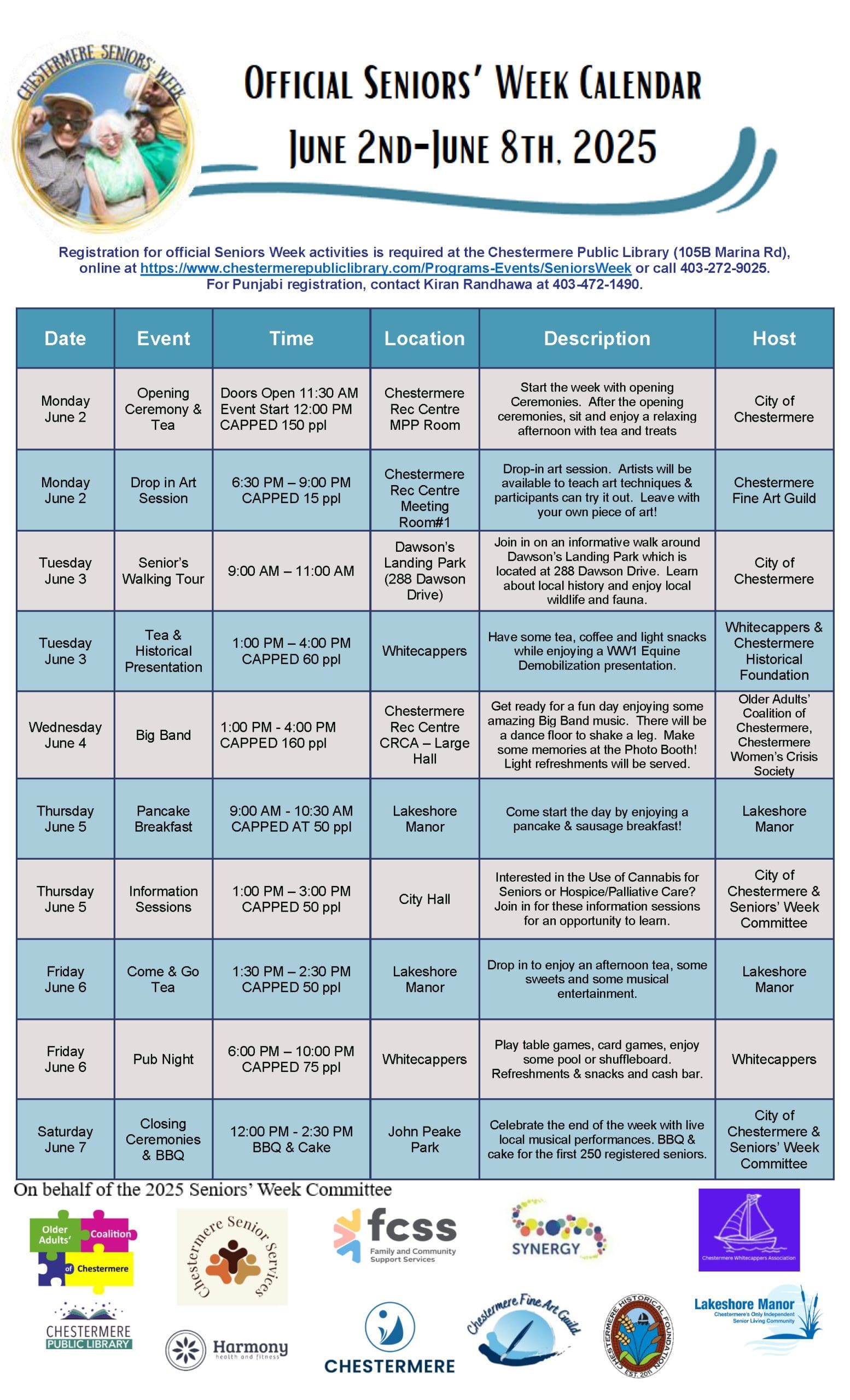 It’s time to celebrate the vibrant seniors in our community with a full week of free activities, entertainment, and connection. From educational sessions and live music to games, dancing, and community gatherings—Seniors’ Week is all about honouring the contributions and spirit of older adults in Chestermere.
